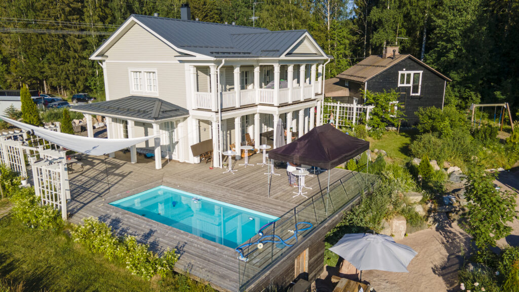 Villa Pajulan uima-allas mahdollistaa mukavat kesäjuhlat. Uima-allas on varattava erikseen yksityiskäyttöön.